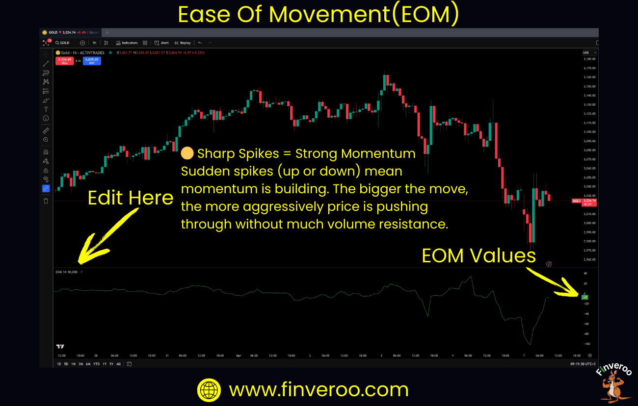 The EOM is most useful for confirming trends and identifying price efficiency—how effortlessly the market is moving in a certain direction.